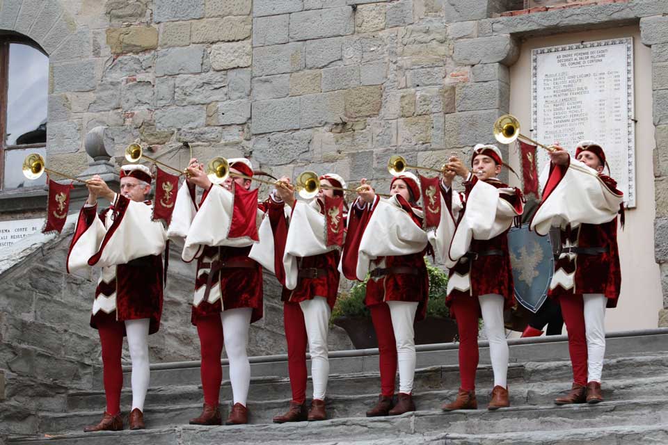 Le chiarine fanno parte del gruppo Musici della Città di Cortona. Insieme ai tamburini, accompagnano e danno movimento a tutto il corteo nelle varie esibizioni. I musici stessi si contraddistinguono per la stupenda coreografia che offrono durante le loro esibizioni, realizzando svariate figure in movimento, e soprattutto per la grande preparazione musicale ed il vasto repertorio, che infondono nello spettatore intense emozioni.