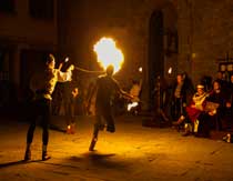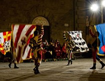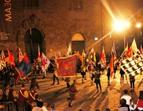 Cala il silenzio quando gli sbandieratori e i musici illuminano la piazza, con torce, spade e tamburi infuocati, offrendo uno spettacolo davvero suggestivo.